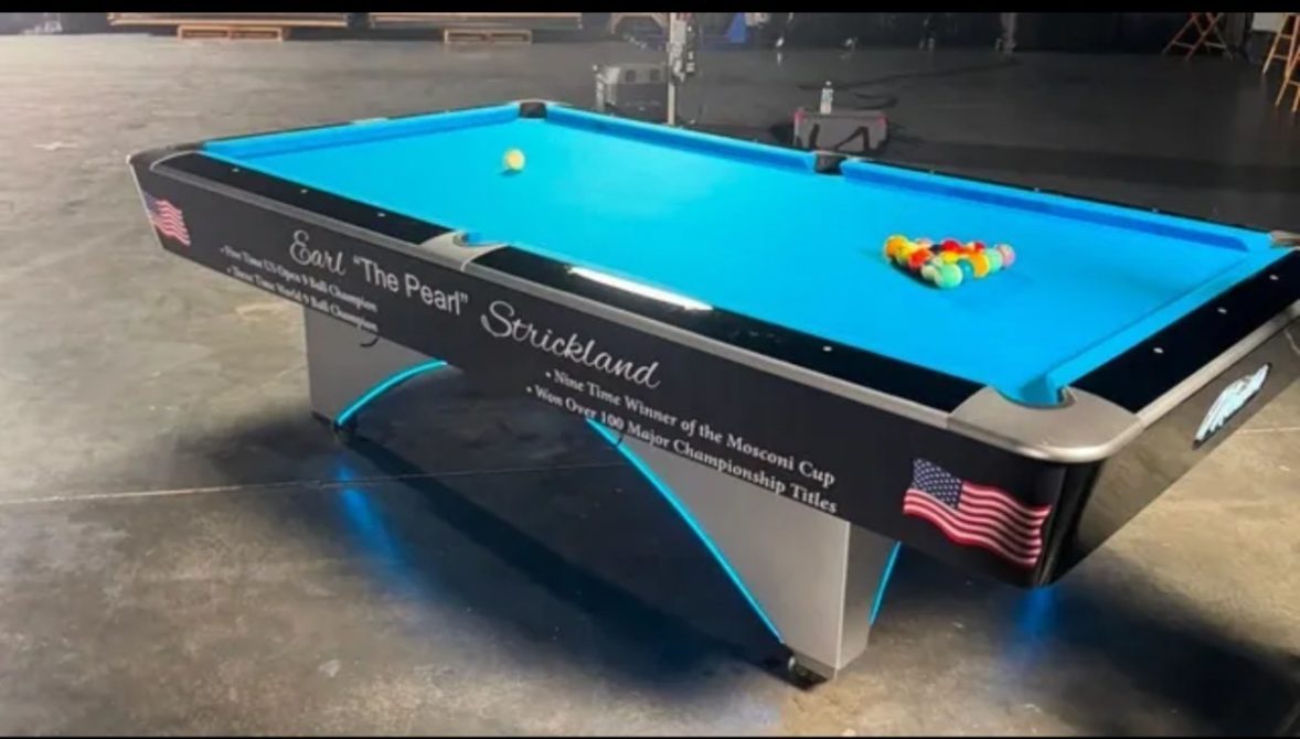 This pool table is the most unique professional grade pool table in the world. It is made with carbon fiber synthetic slate with a heating element built into the table for consistent play with a digital thermostat. It assembles in 5 minutes. It's leveling system has a built in rachet system that adjusts from wheels to hard bushings in seconds. It also has a neon Monster sign lit up and LED lighting around the table. There are also two wireless phone chargers installed along with a Bluetooth Speaker. It is endorsed by Jeannette Lee "The Black Widow" along with Earl "The Pearl" Strickland and Tony Robles "The Silent Assassin". We will be making limited edition commemorative tables for Jeannette Lee and Earl Strickland and each table will be hand signed. We are also working on a table with Tony Robles for 7" pool tables.