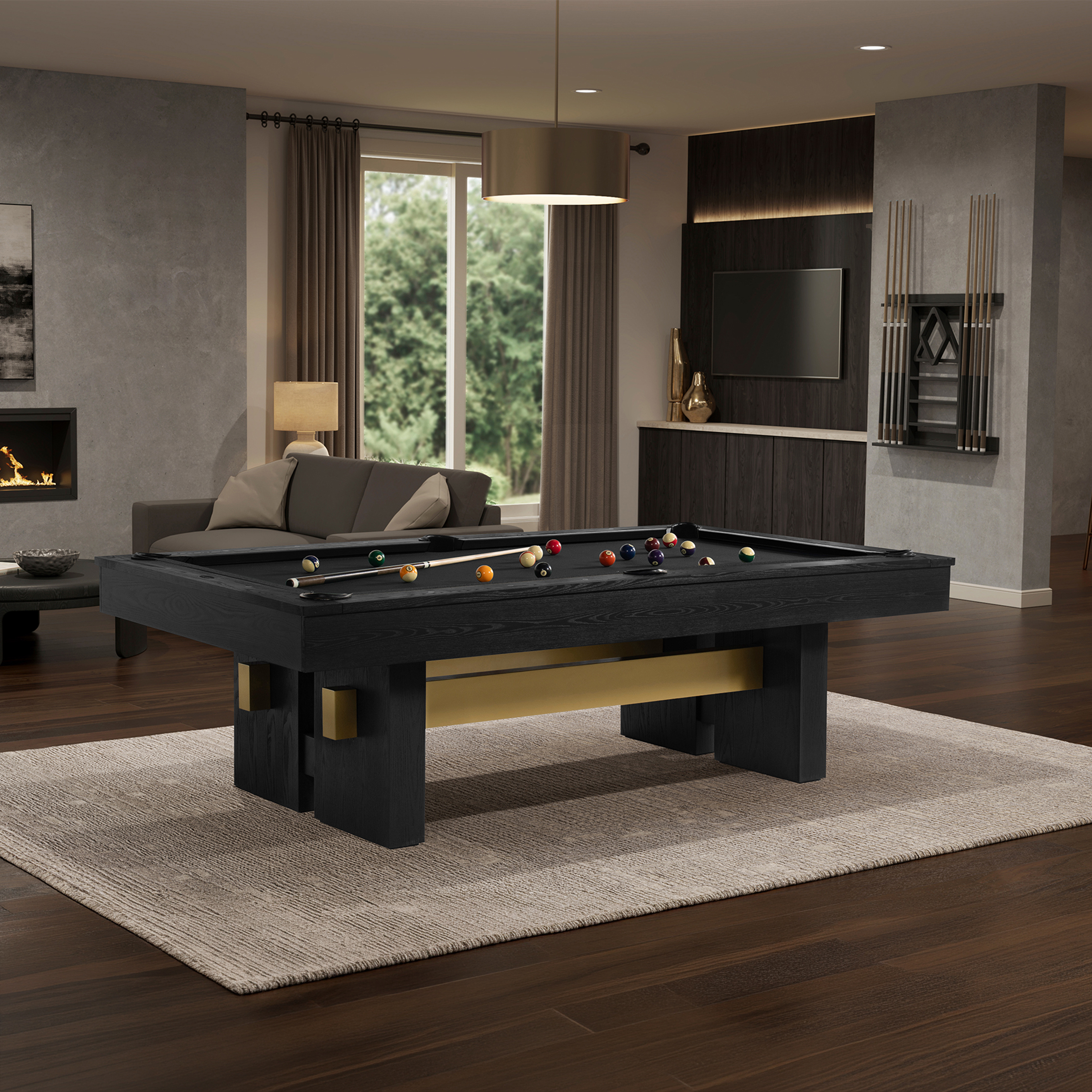 The Nova 8' Pool Table delivers bold, modern style with its deep Onyx finish, sharp lines, and striking gold accents. Designed to stand out, it pairs dramatic visual impact with premium playability. Designed to deliver a smooth, responsive playing experience, the Nova rewards precision and control while inviting repeated play. Its commanding look naturally draws people in, making it an ideal centerpiece for evenings spent challenging friends, hosting guests, or simply enjoying time together. Balancing dramatic modern design with purposeful performance, the Nova transforms casual moments into memorable experiences around the table.
